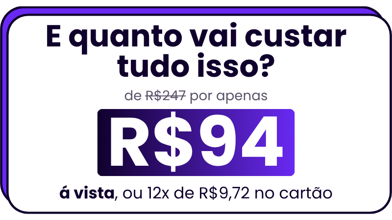 Você terá 12 meses após a compra para acessar todo o conteúdo e suas atualizações.
